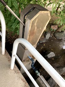 さっそく、ポンプを上下にして隅田川の水を汲み出ししてみます