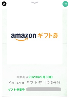 - Amazonのギフト券に反映されました