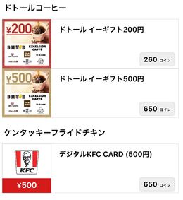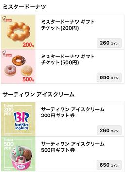 貯まったコインはギフト券や商品券に交換することができます