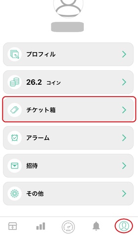 ③ 画面右下のマーク → チケット箱の中に先程交換したギフト券が入っています