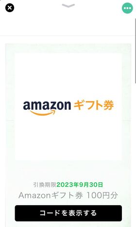① 画面左下のマーク → 今回交換する「Amazonギフト券100円分」をタップ