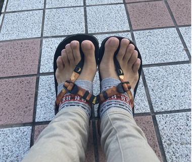裸足+サンダル